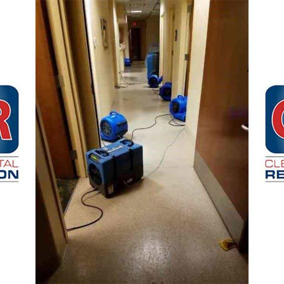 Instead of initiating demolition of the cabinets, specialty equipment was used to dry them in place. Within a week the floors, walls, and ceiling had dried. Less than three months later, repairs had been completed and the clinic was able to re-open.